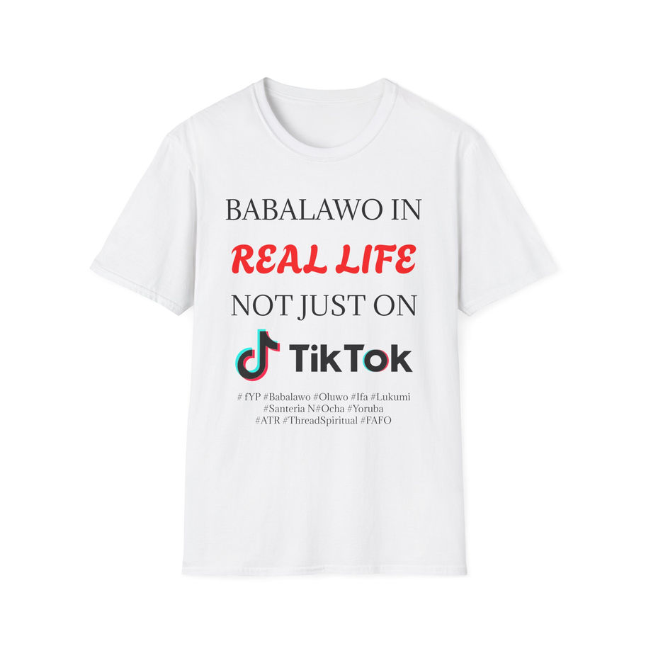 Embrace a unique expression of personality and style with this unisex softstyle t-shirt, a perfect blend of comfort and fun. The playful design boldly states "BABALAWO IN REAL LIFE, NOT JUST ON TikTok," making it a conversation starter and a way to showcase your identity in a lighthearted manner. Ideal for casual outings, social gatherings, or just lounging at home, this tee embodies a relaxed vibe while keeping you stylish. It’s perfect for young adults or anyone who enjoys embracing cultural references and witty humor. Consider this t-shirt for birthdays, friendship celebrations, or as a quirky gift for TikTok enthusiasts and social media lovers.