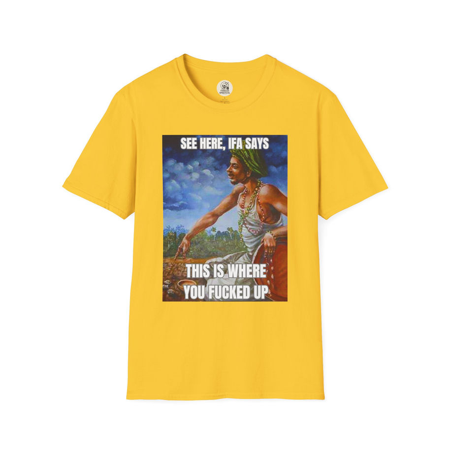 Funny Unisex T-Shirt - "See Here, IFA Says, This is Where You Fucked Up"